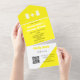 Neon Jaune, élégant, rustique, rétro, mariage plié moderne, code QR Mariage toutes en une invitation. Triplé, ensemble de budgets. Vous pouvez le personnaliser avec vos propres détails.