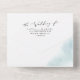 Ce mariage bleu lavement à l'aquarelle est parfait pour un mariage moderne dans une seule invitation. Le design simple et classique présente une touche d'eau bleu clair pastel avec un style minimaliste et élégant. Écrivez vos adresses d'invités à l'arrière de l'invitation pliée, ou achetez les autocollants de étiquette de adresse d'invités de coordination (vendus séparément).