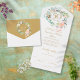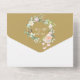 Carton d'invitation tout-en-un pour les 50 ans de mariage avec un joli guirlande florale et les détails de l'événement en typographie élégante. L'invitation comprend une carte RSVP perforée qui peut être adressée individuellement ou laissée en blanc pour que vous puissiez écrire l'adresse de vos invités et les initiales du monogramme chic dans une guirlande florale sur fond doré. Conçu par Thisisnotme©