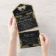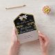 Invitation Tout En Un Noir & Blanc, Feuilles d'or, Doves & Coeur