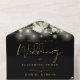 Le tout dans un faire-part de mariage noir et or avec de jolies lampes à cordes, une végétation fleurie et une typographie élégante. L'invitation comprend une carte RSVP perforée qui peut être adressée individuellement ou laissée vide pour que vous puissiez écrire à la main les coordonnées de votre invité. Conçu par Thisisnotme©