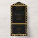 Une très belle et élégante faire-part de mariage en motif plaqué noir et or. Le texte est en or et vous pouvez changer le nom et l'adresse sur la réponse déchirer et ajouter un cachet pour votre invité à le retourner.
