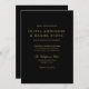 Présentation de notre Mariage d'or noir Typographie moderne Script Invitation : Faites une déclaration avec nos élégantes invitations de mariage avec typographie moderne et de luxueux accents noir et or. Conçues avec une attention minutieuse aux détails, ces invitations exsument le raffinement et le style, donnant le ton pour votre journée spéciale. L'élégant arrière - plan noir est orné d'un superbe script doré, créant un contraste saisissant qui captive l'oeil. Personnalisez les détails de votre mariage, depuis la date et le lieu jusqu'aux noms de la mariée et du marié, pour créer une invitation personnalisée qui reflète votre histoire d'amour unique. Que vous planifiez une soirée urbaine chic ou une soirée glamour, notre Black Gold Mariage Modern Typography Script Invitation est sûr d'impressionner vos invités et de laisser une impression durable. Élevez votre papeterie mariage avec cette suite d'invitation exquise qui allie design moderne et élégance intemporelle.