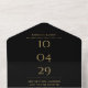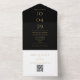 Une élégante faire-part de mariage tout-en-un minimaliste noir et or, avec vos détails spéciaux de date et de mariage, dans une typographie classique et chic. L'invitation comprend une carte RSVP perforée avec votre code QR du site Web mariage et des détails. Conçu par Thisisnotme©
