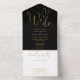 Cette faire-part de mariage minimaliste tout-en-un présente une élégante typographie dorée sur un arrière - plan noir. L'invitation comprend une carte RSVP perforée qui peut être adressée individuellement ou laissée vide afin que vous puissiez écrire à la main les coordonnées de votre invité. Conçu par Thisisnotme©