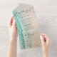 Beau rêve Ocean Summer Destination Tropical Plage Mariage All in One Invitation! Dotée d'une scène de plage sereine, de sable doux et de teintes océaniques fascinantes, cette invitation capture l'essence d'une belle plage. Parfait pour les couples à la recherche d'un thème tranquille et élégant pour leur journée spéciale. Des vagues douces et du sable chaud donnent le ton de cette magnifique invitation de mariage de destination de plage.