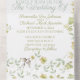 Fleurs d'aquarelle, feuilles et oiseaux élégants, le tout dans un seul Faire-part de mariage qui comprend les informations mariages et la carte postale RSVP que vos invités déchirent et envoient. Les enveloppes ne sont pas nécessaires. Couleurs jaunes dorés, bleues et vertes. Parfait pour un mariage d'été, d'automne, de printemps, de Boho ou de plein air !