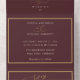 Set on a deep burgundy background with subtle gold accents and elegant serif typography, this all-in-one invitation blends traditional sophistication with modern convenience.