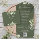 Invitation Tout En Un Olive Green Floral QR Code Monogramme Mariage