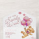 Invitation Tout En Un On Peut Attendre Teddy Bear Baby shower rose