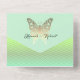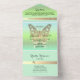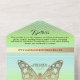 Élégant, moderne, luxueux, or et faire-part de mariage tout-en-un vert avec adorable papillon unique - symbole de renaissance spirituelle, d'espérance et de vie. Ajoutez les détails de votre mariage et rsvp.