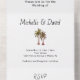 Tropical All in One Faire-part de mariage, avec des palmiers dessinés à la main et un design typographique simple. Avec le lettrage personnalisable, vous ajoutez vos propres informations. Le centre extérieur est vide pour ajouter des adresses d'invités. Une carte RSVP détachable est également à votre disposition. Idéal pour simplifier la planification de votre journée spéciale.