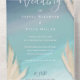 Une faire-part de mariage tout-en-un avec pelouse de pampas. Cette invitation a un arrière - plan doux d'inspiration océanique et des lettres blanches et bleues. Cette invitation comprend une carte RSVP détachée. Ajoutez simplement vos informations, ajoutez cet invitation à votre panier et profitez de votre beau mariage. Pampas Grass Ocean Beach Mariage tout en une invitation Conception de vacances | ©Melissa Patton - Concepteur/Illustrateur