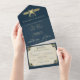 Invitation Tout En Un Papillon Art Déco Monogramme Mariage bleu or