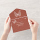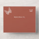 Faire-part de mariage tout-en-un Budget Papillon Terracotta avec un papillon blanc, un fond terracotta et un modèle de texte moderne. Un design parfait qui correspondra au thème de mariage comme le style bohème, minimal, rustique, campagne, automne ou terracotta.