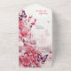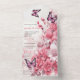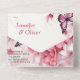 Invitation Tout En Un Papillons et Fleurs dans des tons roses variés