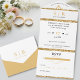 Bande de parties scintillant blanche et or, le tout en un seul faire-part de mariage. Personnalisez les initiales du monogramme et les détails du mariage. Aussi parfait pour un renouvellement de voeu.
