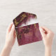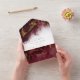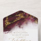 Un arrière - plan abstrait qui évoque le marbre dans les tons bordeaux, veiné d'or brillant, est la toile de fond de l'élégant texte de script et de la conception moderne dans les pièces de cette belle suite mariage. Le RSVP et le faire-part de mariage combinés pratiques présentés ici présentent la conception ci-dessus ainsi qu'un modèle pour ajouter facilement vos détails mariages pertinents. Recherchez ID644 pour voir toutes les pièces de coordination de cet ensemble.