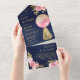 Éblouissez vos invités avec cet élégant invitation baby shower avec de belles fleurs et ballon rose avec goût or avec carte de demande de livre détachable. Ajoutez simplement les détails de votre événement sur ce modèle convivial pour en faire une invitation unique.