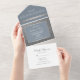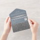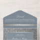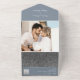 Élevez votre mariage avec cette élégante faire-part de mariage tout-en-un d'argent minimal et bleu poussiéreux. Doté d'une bordure de parties scintillant argentée élégante et d'une photo personnalisable, cette invitation est parfaite pour les mariages modernes et sophistiqués. Personnalisez avec vos noms, détails et informations RSVP pour un look poli. Remarque : Cette invitation tout-en-un nécessite une enveloppe distincte pour l'envoi. Nous vous recommandons de l'apparier avec une enveloppe A9 standard (5,75 po x 8,75 po) pour un meilleur ajustement.