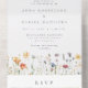 This design features elegant watercolor wildflowers in soft, spring hues. Perfect for rustic, boho garden weddings.