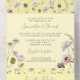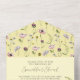 Feminine et vintage Pastel Jaune tous en une invitation de mariage avec une typographie simple et de beaux éléments botaniques de fleurs sauvages.