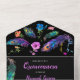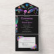 Invitation Tout En Un Peacock Feathers & Fleurs Quinceañera Noir