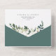 Notre faire-part de mariage White Peony entoure vos détails de mariage avec un cadre géométrique moderne de verdure aquarelle peinte, feuillage botanique et fleurs de roses et de pivoines blanches.