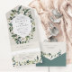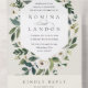 Notre faire-part de mariage White Peony entoure vos détails de mariage avec un cadre géométrique moderne de verdure aquarelle peinte, feuillage botanique et fleurs de roses et de pivoines blanches.