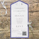 Invitation Tout En Un Périwinkle et monogramme blanc Code QR minimal