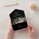 Conçue dans un souci de commodité, cette invitation de mariage tout-en-un offre de nombreux avantages pour vous et vos invités, vous faisant gagner un temps et un effort considérables. Dotée d'un code QR, elle permet aux invités de répondre facilement en ligne et d'accéder à des informations complémentaires sur votre mariage via votre site web. Cette approche contemporaine assure une expérience efficace et rationalisée pour tous. L'invitation présente élégamment une belle photo du couple et un monogramme au verso, le tout sur un fond noir sophistiqué. Son design intemporel crée une impression durable sur vos proches, augmentant leur impatience pour votre grand jour. Vous pouvez également personnaliser cette invitation pour refléter votre style unique, ajoutant une touche personnelle qui rendra votre célébration encore plus spéciale. Profitez de la combinaison parfaite de commodité, de personnalisation et de sophistication avec cette invitation de mariage tout-en-un. Qu'elle serve d'introduction idéale à votre célébration de mariage, préparant le terrain pour une journée inoubliable remplie d'amour, de joie et de souvenirs précieux.