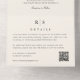 Une photo horizontale ou paysagère grace le panneau supérieur de ces invitations de mariage traditionnelles en noir croustillant sur un riche arrière - plan crème en ivoire. Un choix intemporel pour des mariages élégants, avec de belles tapisseries traditionnelles et un aménagement formel. La partie inférieure détachable comprend vos détails d'invité, le site Web mariage, et un code QR personnalisable pour les RSVP ou des informations supplémentaires, orné d'un élégant monogramme initial.