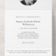 Capturez des amis et des familles de votre être aimé avec notre Invitation funéraire moderne et unique. Cette belle invitation se replie pour ressembler à une enveloppe, en noir avec une bannière blanche et les mots "Le passage" à l'extérieur. À l'intérieur, vous trouverez un modèle photo et des modèles de texte personnalisables, vous permettant d'ajouter tous les détails nécessaires des funérailles. De plus, il y a une zone spéciale où la famille et les amis peuvent partager leurs souvenirs spéciaux, créant une célébration significative de la vie. Préservez ces moments chéris avec cette invitation unique.