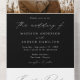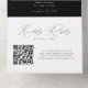 Faire-part de mariage tout-en-un élégant avec votre photo fiançailles en haut du design. Vos noms et détails mariages sont affichés en texte blanc avec accents de script de calligraphie moderne sur un arrière - plan noir. Le design comporte un code QR pour que les clients puissent RSVP en ligne et voir les détails du mariage sur votre site mariage. Conçu pour coordonner avec notre collection de mariages Modern Elegance.
