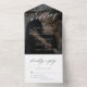 Photo élégante et tendance tout en un faire-part de mariage avec RSVP avec "le mariage de" texte blanc dans script de calligraphie d'écriture chic sur une superposition transparente noire. Personnalisez-le avec votre photo et votre texte. ++++++++++++ Cette invitation de mariage intemporelle convient aux cérémonies et réceptions mariages de style moderne.
