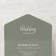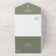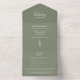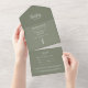 Rustic Sage Green All in One Faire-part de mariage, avec un pin simple et un design typographique simple. Avec le lettrage personnalisable, vous ajoutez vos propres informations. Le centre extérieur est vide pour ajouter des adresses d'invités. Une carte RSVP détachable est également à votre disposition. Idéal pour simplifier la planification de votre journée spéciale.
