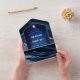 Invitation Tout En Un PixDezines Aquarelle Agate Ardoise Bleu Barre Mitz