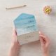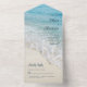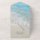 Parfaits pour les mariages de plage de destination, tous dans une invitation de mariage côtier avec déchirure RSVP s'adaptent à votre budget sans sacrifier la qualité. L'arrière - plan de plage tropicale est une belle photo de vagues bleues de l'océan et de flocons de mer blancs qui tapissent sur le rivage.