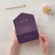 Invitation Tout En Un Plum violet élégant Monogramme QR Code Mariage
