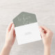 Cette faire-part de mariage minimaliste tout-en-un présente une typographie élégante sur un arrière - plan vert sage. L'invitation comprend une carte RSVP perforée qui peut être adressée individuellement ou laissée vide afin que vous puissiez écrire à la main les coordonnées de votre invité. Conçu par Thisisnotme©