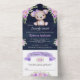 Invitation Tout En Un Purple Floral Teddy Bear Baby shower bleu marine