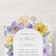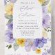 Invite friends and family in style and set the tone for your special day with this charming birthday invitation. Design features purple and yellow watercolor flowers and greenery on white background.