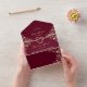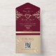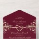 Faire-part de mariage tout-en-un élégant au riche design floral bordeaux et or. Comprend un détail de coeur moderne, des fleurs assorties, et un code QR pratique pour RSVP et des informations sur le site mariage. Cette invitation de sceau et d'envoi ne nécessite pas d'enveloppe séparée - simplement plier, sceller et courrier. Parfait pour les mariages romantiques d'automne et d'hiver.