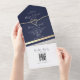 Invitation Tout En Un QR Code Gold et Mariage bleu marine