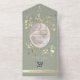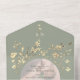 Announce your special day with this sage green and gold floral all in one wedding invitation, designed to combine elegance, functionality, and sustainability. Featuring soft sage green tones, delicate gold botanical accents, and an oval photo window, this design creates a refined and romantic first impression.