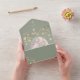 This eco-friendly all-in-one invitation functions as both the invitation and the envelope, reducing paper waste while keeping all essential details beautifully organized. The lower detachable section includes a QR code for RSVP and wedding website, allowing guests to respond easily and access additional event information. A return address is printed on the back of the RSVP section for added convenience.