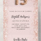or rose, arrière - plan de couleur rousse, décoré de faux éclats de parties scintillant à l'intérieur. Personnalisez et ajoutez une photo, des noms, des détails du parti, la date RSVP, l'adresse et le nom de retour. Le numéro 15 est écrit avec un numéro de style de ballon.