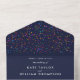 Le tout dans un faire-part de mariage avec vos initiales monographiques et confettis arc-en-ciel colorés sur un arrière - plan bleu marine. L'invitation comprend une carte RSVP perforée qui peut être adressée individuellement ou laissée en blanc pour que vous puissiez écrire à la main les coordonnées de votre invité. Conçu par Thisisnotme©