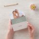 Le tout dans un faire-part de mariage avec votre photo, initiales monogrammes et confettis colorés arc-en-ciel sur un arrière - plan vert sauge. L'invitation comprend une carte RSVP perforée qui peut être adressée individuellement ou laissée en blanc pour que vous puissiez écrire à la main les coordonnées de votre invité. Conçu par Thisisnotme©