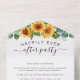 Élopement rustique ou annonce de mariage privé et réception de mariage, tout en une invitation pour annoncer votre mariage à la famille et aux amis et les inviter à une réception post-mariage ou une fête de célébration. Ce design présente des bouquets aquarelles de fleurs de tournesol et de verdure d'eucalyptus sauge, et "Fête pour toujours heureux" dans un mélange de typographie simple et d'un script tendance avec fioritures. Une carte postale RSVP détachable fournit une réponse pratique et écologique sans enveloppe de vos invités.